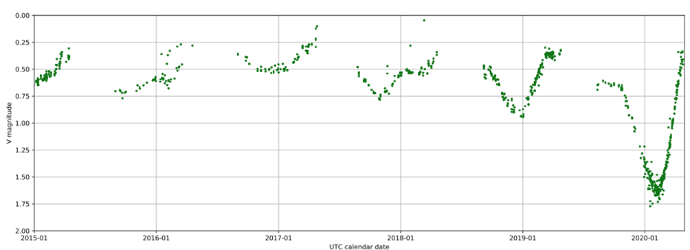 Tout commence le 7 décembre 2019, lorsqu’un message laconique publié dans un Astronomer’s Telegram signale une chute anormale de luminosité.
