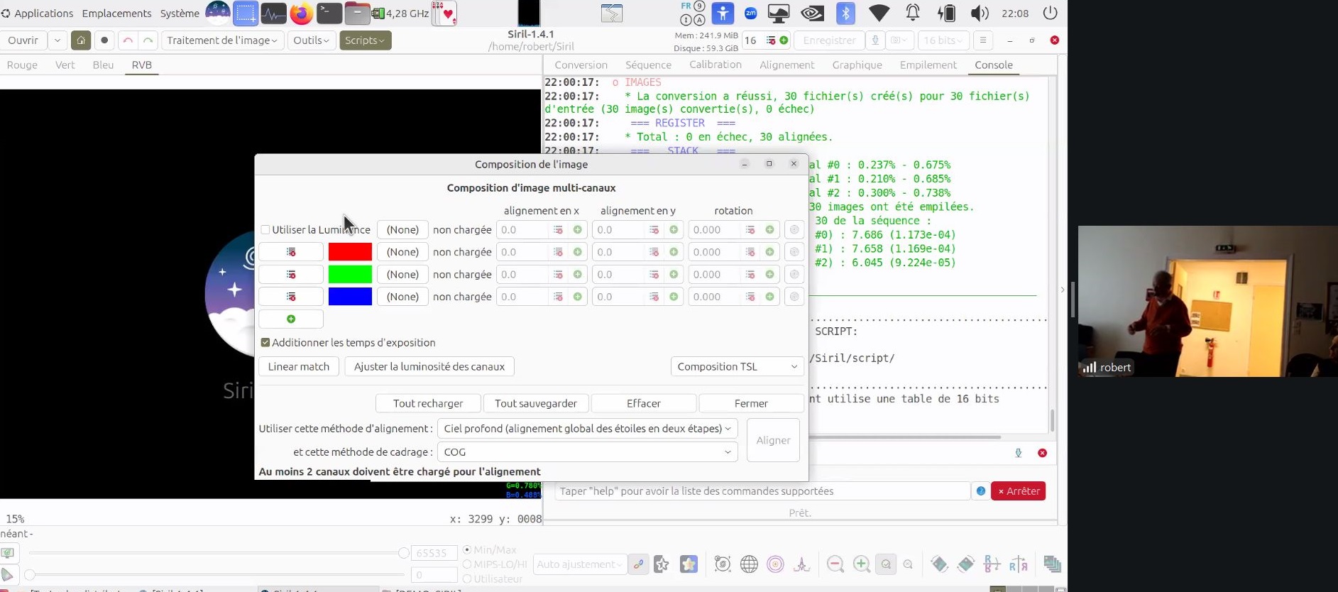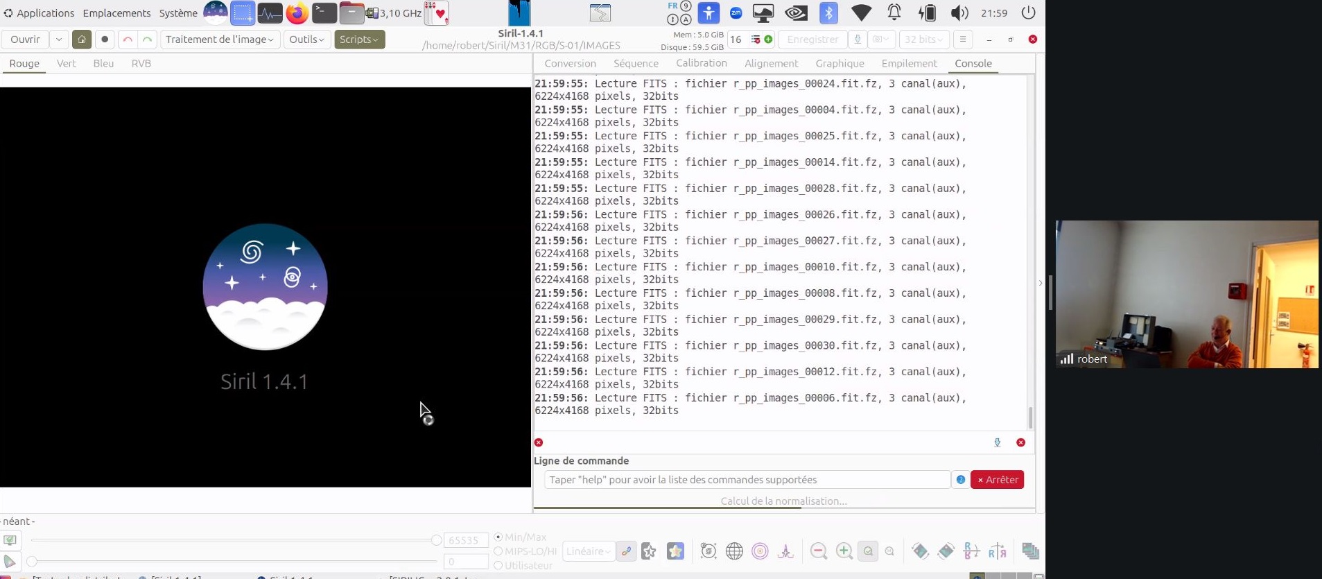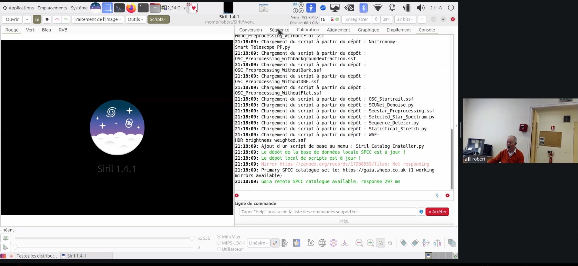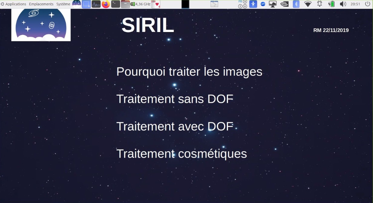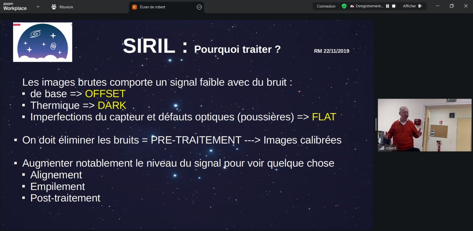 Ce soir au Club, Robert présente le logiciel de traitement d’imagerie SIRIL (programme libre de droit, français, sous plusieurs plateformes (ici sous Linux).