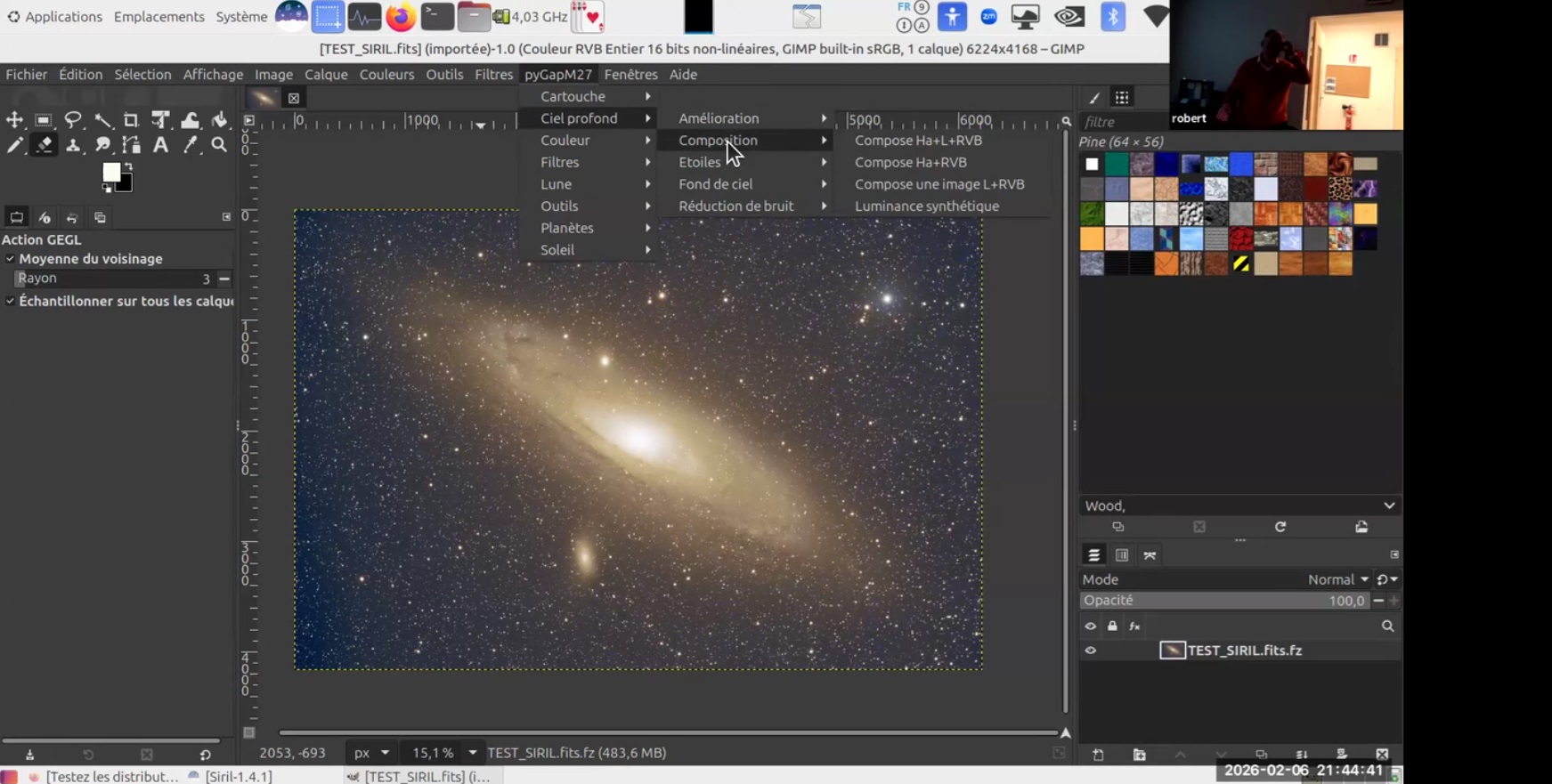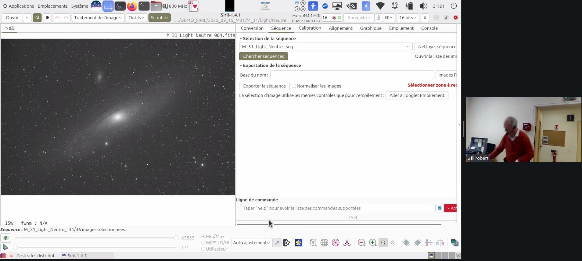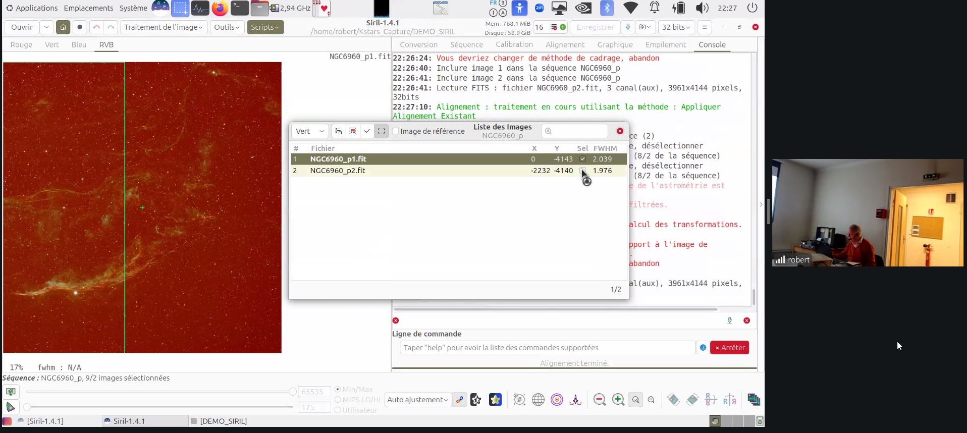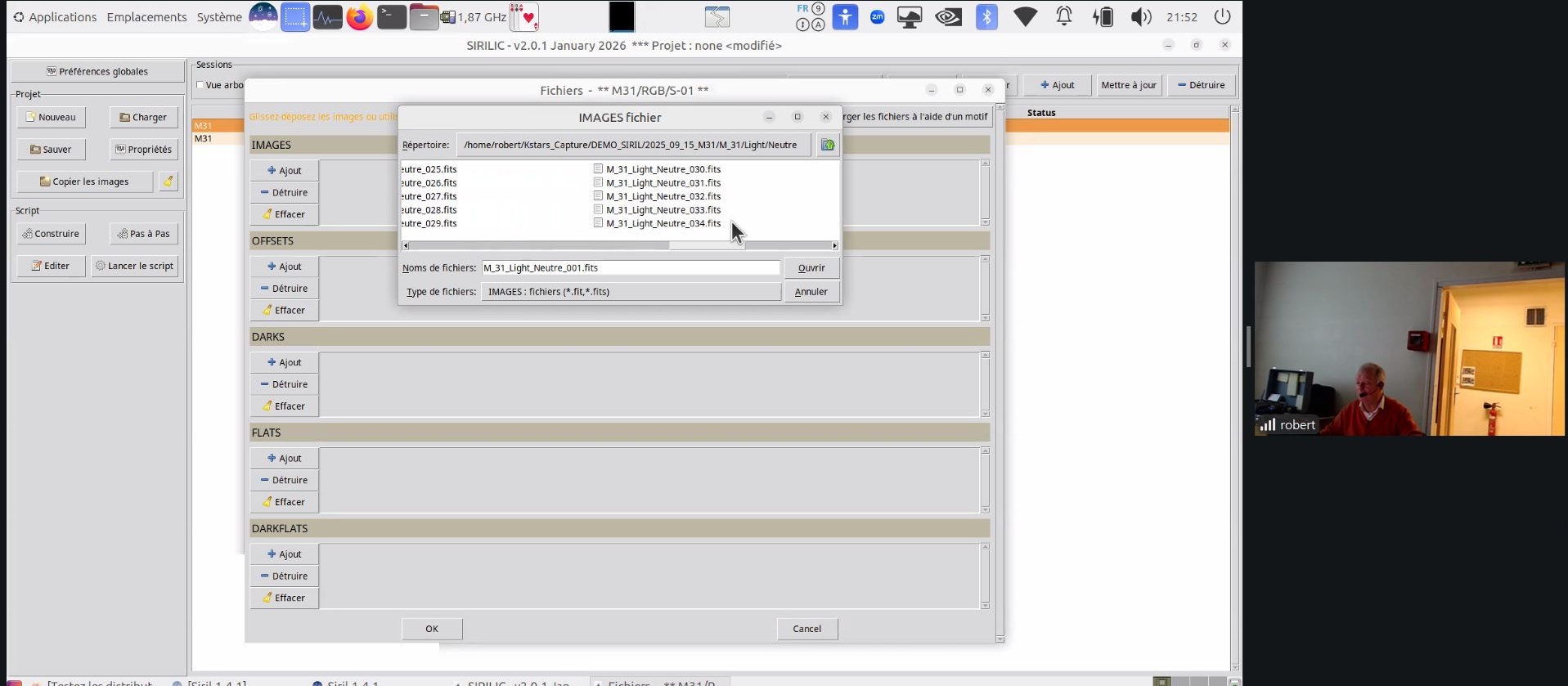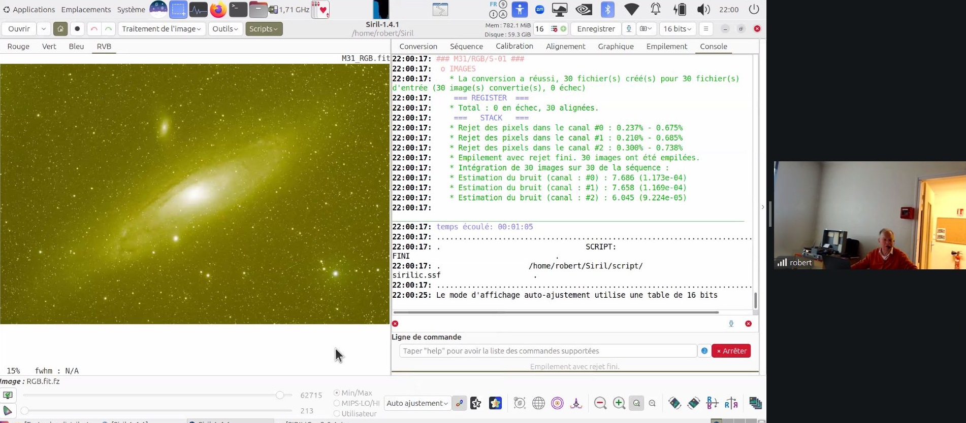 Ce soir au Club, Robert présente le logiciel de traitement d’imagerie SIRIL (programme libre de droit, français, sous plusieurs plateformes (ici sous Linux).