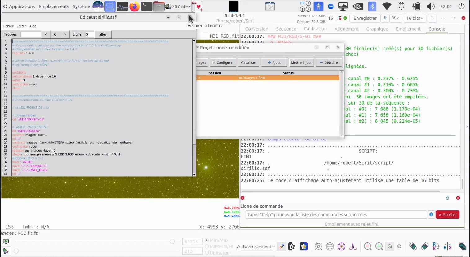 Exemple se script généré par SIRIL