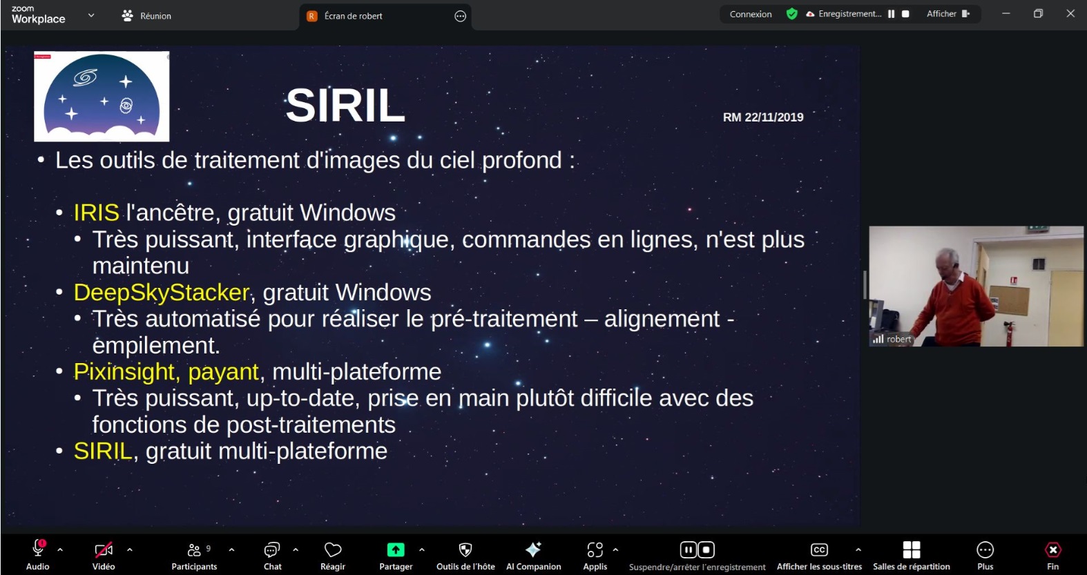 Un grand merci à Robert pour sa présentation passionnante de SIRIL !