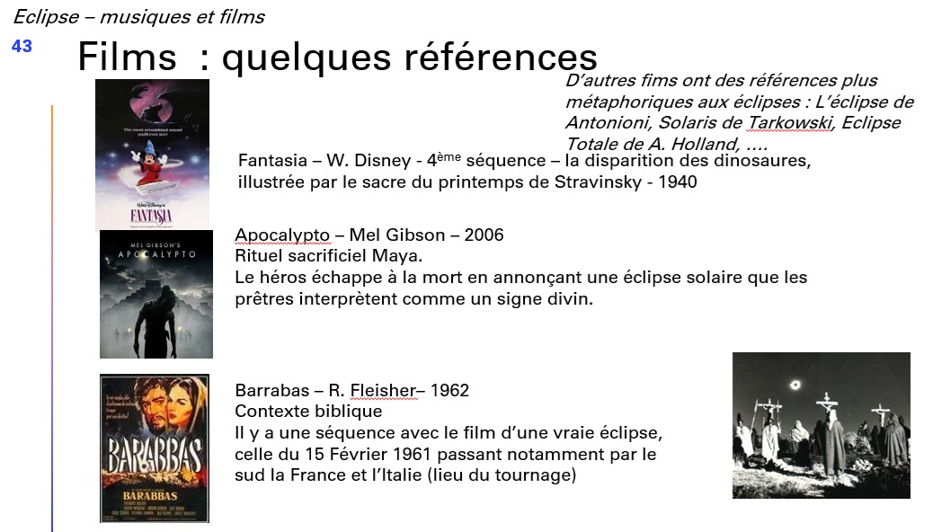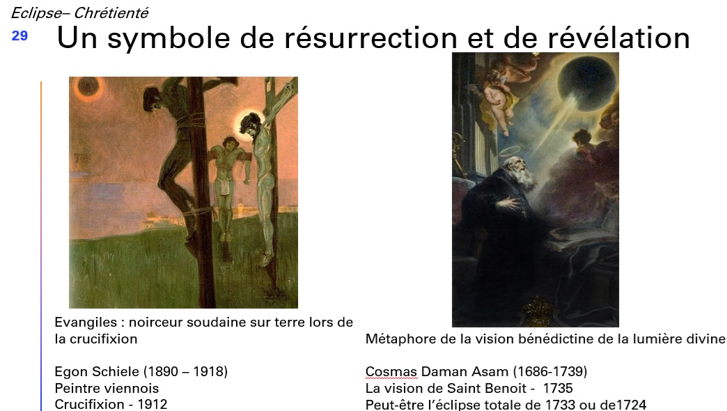 Notre conférencier évoque ensuite les différentes représentations astronomiques des éclipses au travers des âges et des artistes.