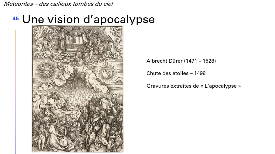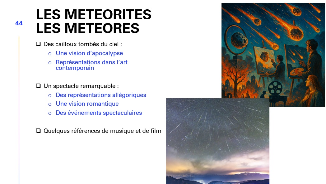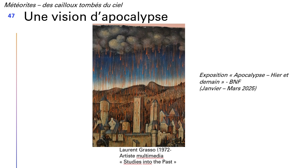 Dans un troisième temps, notre conférencier aborde le symbolisme et l’approche artistique des évènements météoritiques.