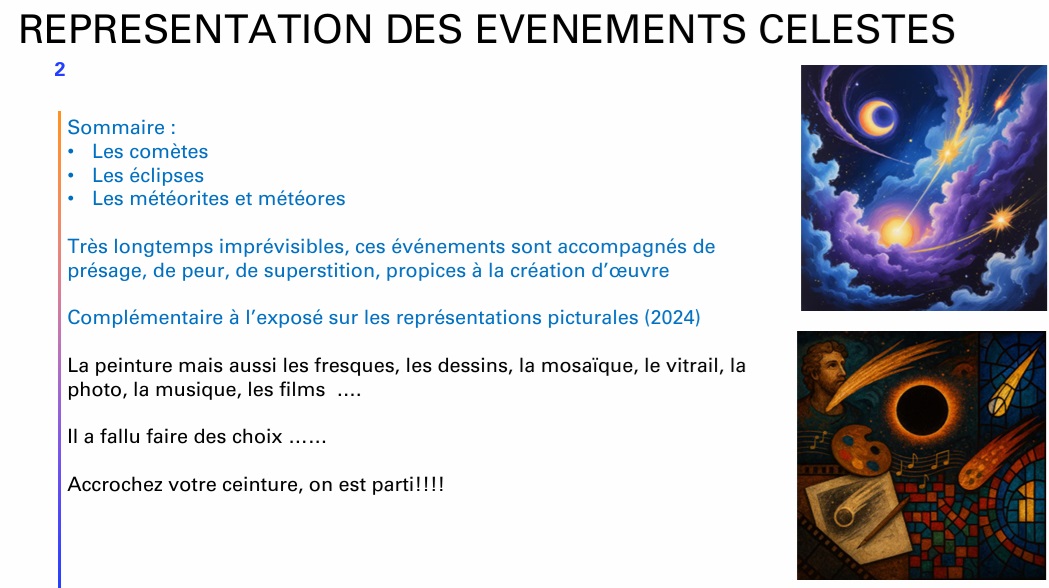 Ce soir au Club, Jean-Marc G présente une conférence sur la représentation picturale et musicale des évènements célestes.