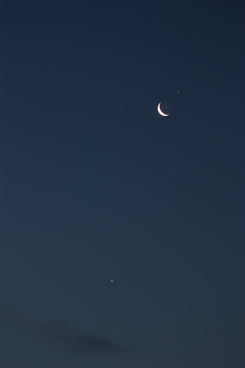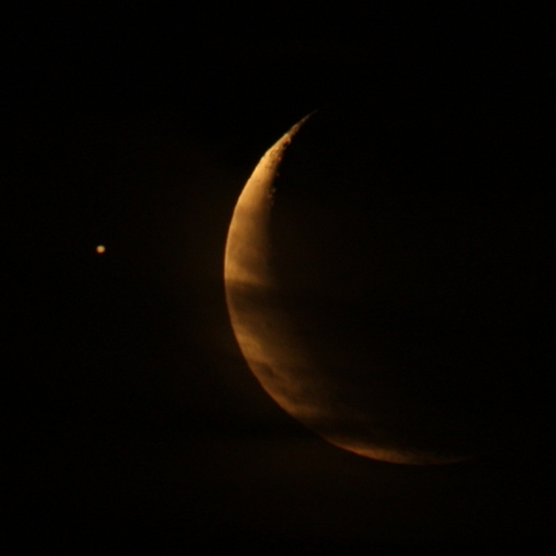 Dans la nuit du 14 au 15 juillet 2012, se produisait l'occultation de Jupiter par la Lune. L'immersion de Jupiter était donnée pour environ 3h45 et l'émersion pour environ 4h15 heure locale. Vu la météo plutôt difficile cette année, je lança l'idée le 13 dans l'après midi en croisant les doigts pour le temps qui à première vue devait être clément. Vu que le phénomène se produisait plein Est et bas sur l'horizon, je proposa le plateau de Saclay. Vu l'heure de l'occultation et une météo un peu aléatoire, seul Fréderic se sentant motivé, se proposa de tenter l'aventure. Olivier se réservait selon la météo... Il faut savoir que début juin, certains ont tenté le transit de Vénus avec une météo bien plus défavorable. Au moins, pas de regret. Frédéric m'a rejoint à 2h45 à la sortie de Saclay. Etant arrivé 5-10mm plus tôt (a cette heure là, ca roule bien...), je suis allé repérer l'endroit propice pour l'observation. Le temps relativement dégagé nous laissait bonne espoir. J'ai envoyé un texto à Olivier. On s'est installé: On attend madame la Lune qui se fait désirer derrière les nuages. Un moment Fréderic me dit que l'on voit un bout de la lune, je l'avais prise quelques secondes avant pour un avion dans les nuages... le nul On se met en position de shoot. L'un comme l'autre, on avait préparé nos temps de pose sauf que vu la hauteur très basse de la lune ainsi que les passages de nuages, les temps de pose n'étaient pas bons. On assiste au phénomène jusqu'à l'immersion de Jupiter derrière la Lune. Ensuite que des nuages, on patiente, on patiente et on patiente encore. Pendant ce temps là, je m'amuse à shooté les Pléiades à travers les nuages, plutôt esthétique comme résultat et la nébuleuse Dumbell, en poussant les iso, on la devinait à l'écran de l'APN. Au final, on a du attendre certainement 1h après l'immersion mais les nuages étant trop présent, on décide donc de rentrer. Sur le retour vers Paris, le temps s'est éclairci complètement. Donc arrêt au niveau du musée de Sèvres pour une nouvelle séance de shoot avec Vénus dessous. A chaque séance de shoot, une certaine excitation m'envahissait du fait de la rapidité du phénomène et de la présence plus ou moins des nuages n'aidait pas forcement à prendre les meilleures décisions en terme de réglages de l'APN.