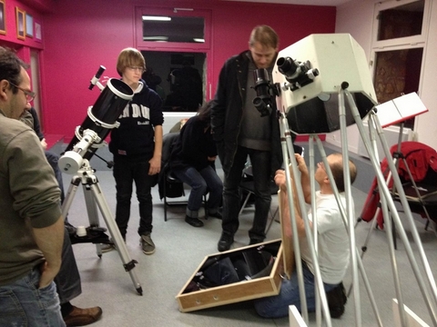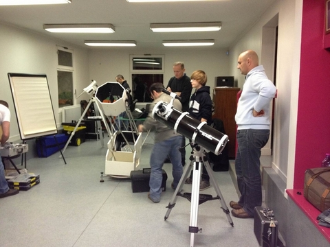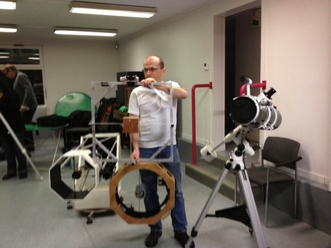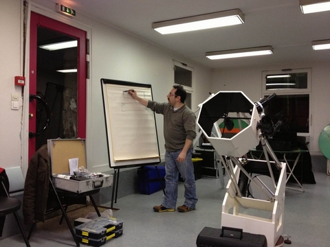 Bonjour à tous , Quelques images de notre atelier de vendredi qui concernait la mise en station et collimation sous la houlette de Gilles. Nous étions une dizaine, Gilles a commencé par la collimation, Christophe et Baptiste ont pu vérifier et régler leur Skywatcher 150/750 sous l'œil critique de Gilles!! L'exercice de la mise en station nous a permis d'utiliser plusieurs méthodes, Gilles et Laurent nous ont expliqué tout ça en détails!! En fin de séance, Laurent nous a sorti son Dobson dont le miroir en faisait rêver plus d'un mais surtout Gilles!!) Virginie est repartie avec une méthode d'utilisation de son viseur polaire…YAPUCA!! Cordialement, @Hervé |